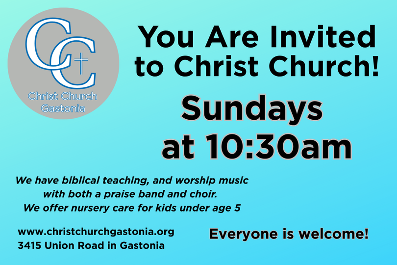 Christ Church Gastonia is a steadfast Christian community, a part of the Global Methodist movement. We strive to give glory to God our Creator; to be His hands and feet through service to others; and to connect with the local and global communities through witness of Jesus' love. Our strategy is to prepare people for ministry through dynamic worship, vital community outreach, life-changing small group study, and joyful Christian fellowship.